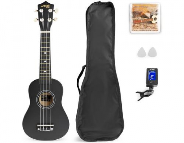 MAX Ukulele UKEY Set Soprano Schwarz 21 Zoll / Sopranukulele, schwarz, Tuner, GigBag,Picks / Thema: Ukulelen
