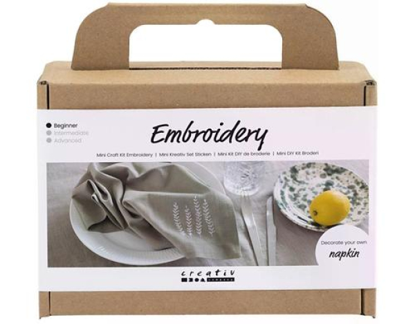 Creativ Company Bastelset Sticken Serviette StaubgrünServiette, Staubgrün / Thema: Bastelsets