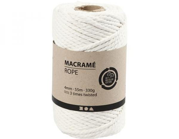 Creativ Company Baumwollgarn Makramee Rope 330 g, Weiss / 330 g, 55 m, Naturweiss / Thema: Wolle