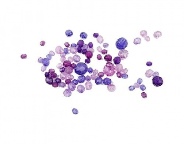 Creativ Company Facettenperlen 4-12 mm Violett, 170 Stück / violett, Grösse: 4-12 mm, 50g, 170 Stück / Thema: Perlen