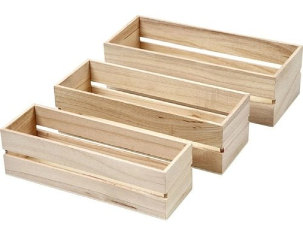 Creativ Company Holzboxen 3 Stück / 3 Grössen / Thema: Holzartikel