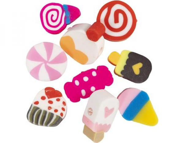 Creativ Company Perlen Ton Figurperlen 60 Stück, Süssigkeiten / 60 Stück, Durchm. 10 mm, Lochgrösse 1.5mm / Thema: Perlen