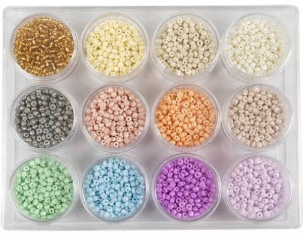 Creativ Company Rocailles-Perlen Pastell Farben / 12 x 17g, G: 8/0, D: 3mm, L: 0.6-1.0mm / Thema: Perlen