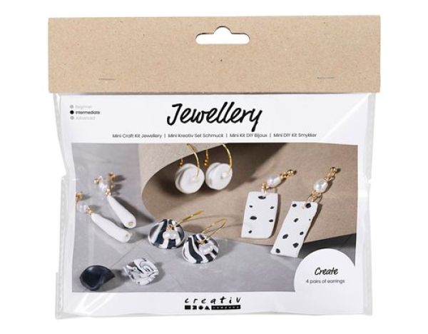 Creativ Company Schmuck Bastelset Ohrringe Schwarz/Weiss / Klassische Perlen, inkl. Anleitung / Thema: Schmuck Bastelset