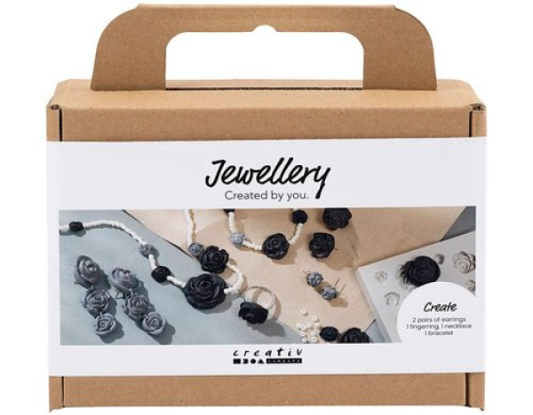 Creativ Company Schmuck Bastelset Rosen, Schwarz/Weiss / Fineclay / Thema: Schmuck Bastelset