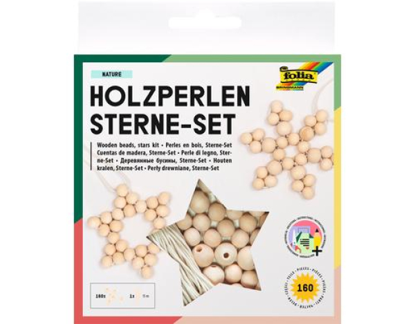 Folia Holzperlen Sterne Nature, 160-teilig / 160-teilig / Thema: Perlen