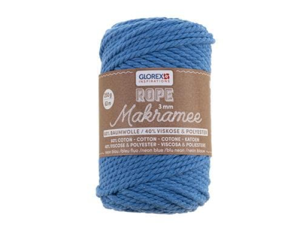 Glorex Wolle Makramee Rope gedreht 63 m x 3 mm, 250g, Neonblau / 3mm, 250g, 60% Cotton, 40% Viskose, neblau / Thema: Wolle