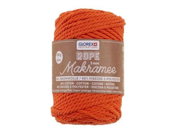 Glorex Wolle Makramee Rope gedreht 63 m x 3 mm, 250g, Neonorange / 3mm, 250g, 60% Cotton, 40% Viskose, norange / Thema: Wolle
