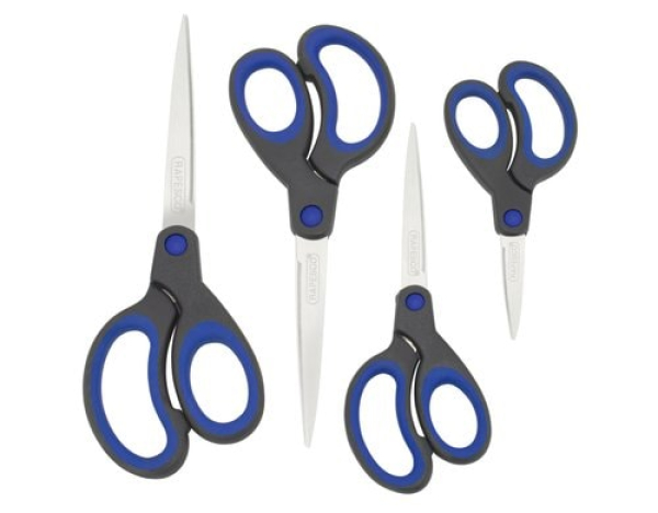 Rapesco Schere Soft Grip Schwarz/Blau, 4 Stück, Edelstahl, Universal / 1x21.5cm,1x19.8cm,1x16.5cm,1x13.3cm,blau / Thema: Scheren