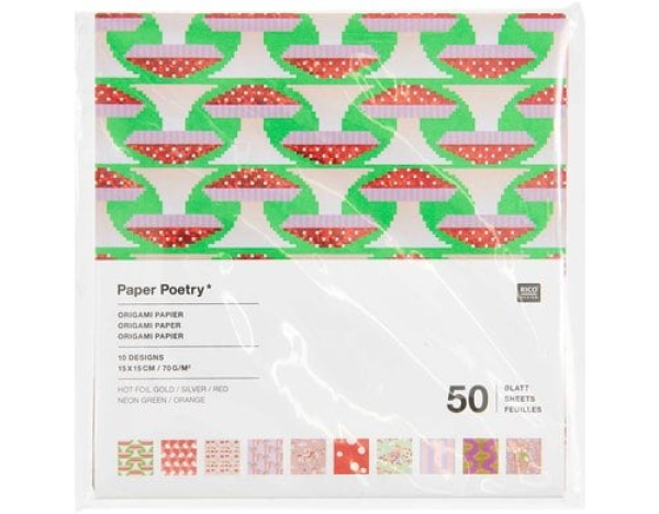 Rico Design Bastelpapier Bastelblock Origami 50 Blatt, 15 x 15 cm / 50 Blatt, 70gm2 / Thema: Bastelpapier