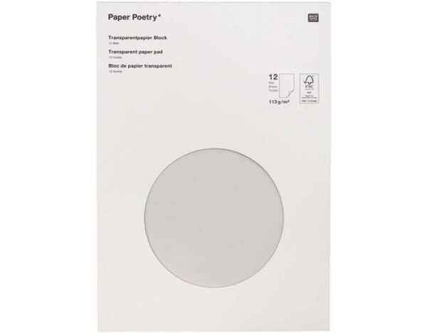 Rico Design Transparentpapier Block A4, 113 g/m2, 1 Stück, Transparent / 12 Blatt, A4, 113 g, FSC Recycled / Thema: Bastelpapier