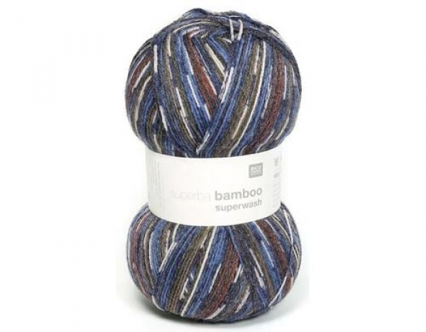 Rico Design Wolle Bamboo für Socken 4-fädig, 100 g, Blau; Braun / 100 g, 420 m, 50 % WV, 25 % PA, 25 % VI / Thema: Wolle