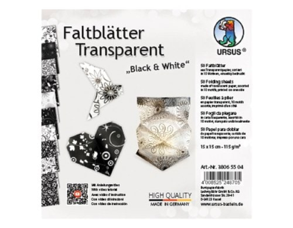 URSUS Faltblätter Black & White 15 x 15 cm, 115 g/m2, 50 Blatt / Black & White, 115g/m, 15 x 15 cm, 50 Blatt / Thema: Bastelpapier