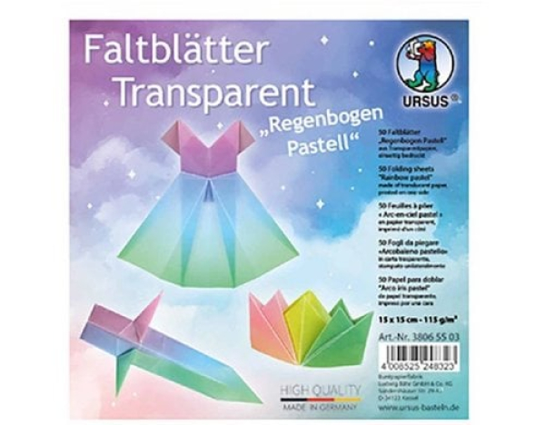 URSUS Faltblätter Rainbow 50 Blatt / Rainbow Pastell, Trnasparentpapier, 15x15cm / Thema: Bastelpapier