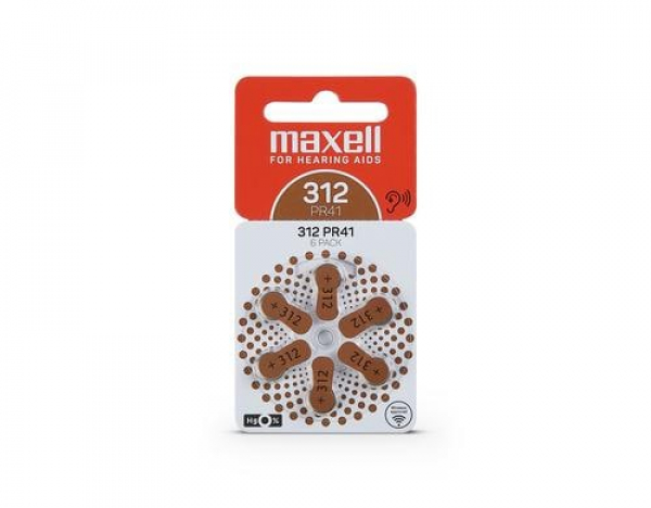 Maxell Europe LTD. Hörgerätebatterie PR41- 312, 6 Stück / Hörgerätebatterie 312 / Thema: Batterien