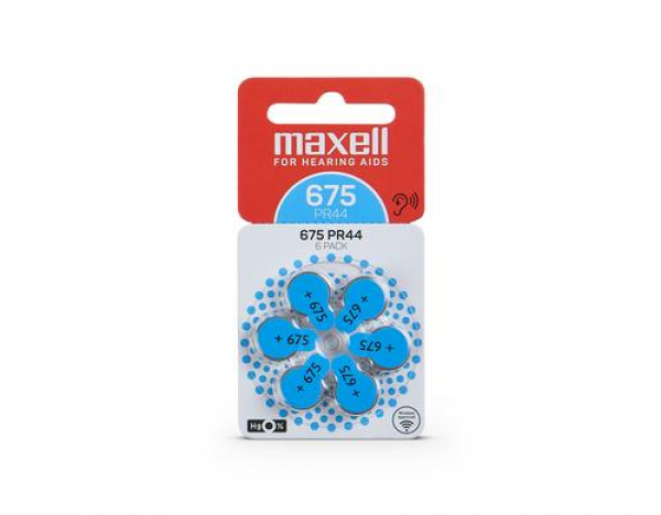 Maxell Europe LTD. Hörgerätebatterie PR44- 675, 6 Stück / Hörgerätebatterie 675 / Thema: Batterien