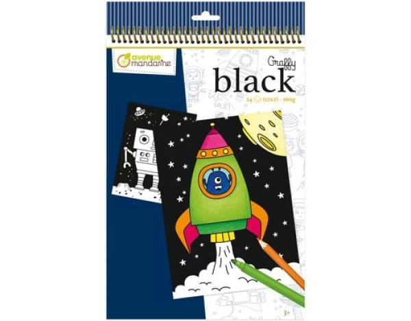 Avenue Mandarine Zeichenblock Graffy Black Weltraum / 24 Blätter, 2x12 Zeichnungen, 160g/m2 / Thema: Malblöcke