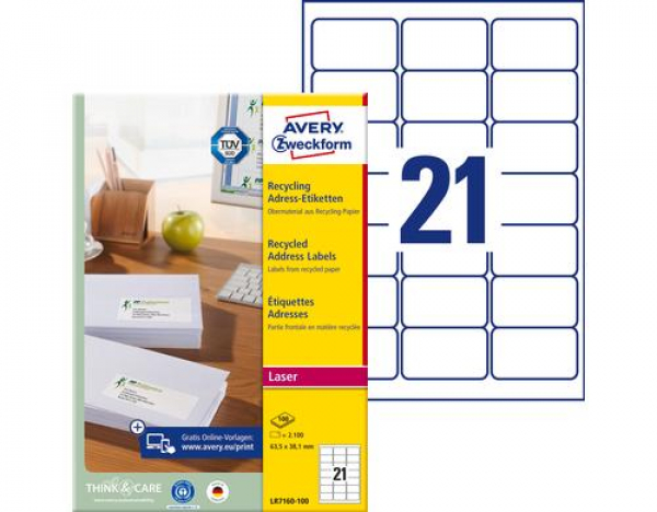Avery Zweckform - Adressetiketten 63.5 x 38.1 mm, 100 Blatt / Inhalt: 2.100 Etik. / 100 Blatt / Thema: Etiketten