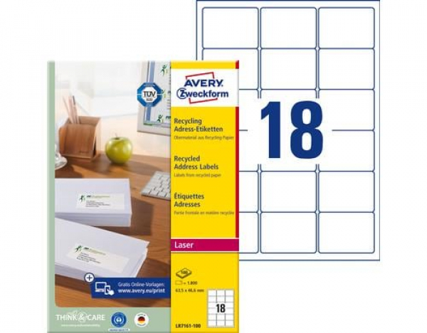 Avery Zweckform - Adressetiketten 63.5 x 46.6 mm, 100 Blatt / Inhalt: 1.800 Etik. / 100 Blatt / Thema: Etiketten