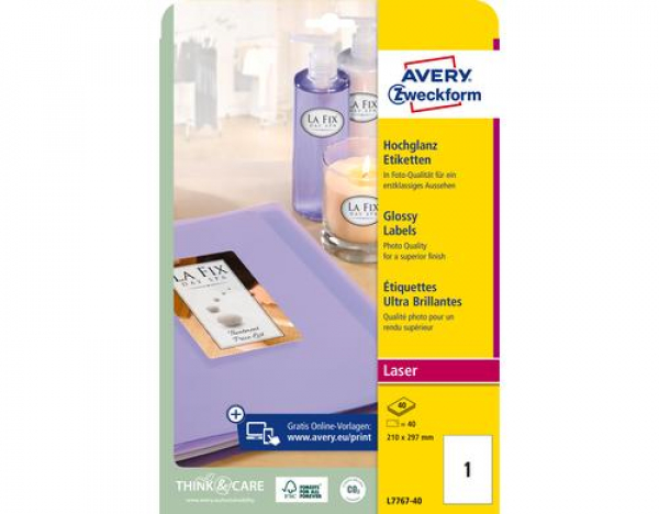 Avery Zweckform - Fotoetiketten L7767-40 210 x 297 mm / Packung zu 40 Blatt / 40 Etiketten / Thema: Etiketten