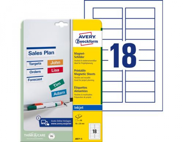 Avery Zweckform - Magnet-Schilder 78 x 28 mm, 5 Blatt / Inhalt: 90 Etik. / 5 Blatt / Thema: Etiketten