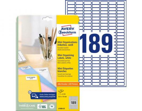Avery Zweckform - Mini-Etiketten L7658-25 25.4 x 10 mm / 25.4 x 10mm, 25 Bogen / 4725 Etiketten / Thema: Etiketten