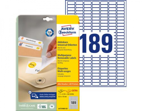 Avery Zweckform - Mini-Etiketten Stick + Lift 25.4 x 10 mm, 25 Blatt / 25.4 x 10mm, 25 Bogen / 4725 Etiketten / Thema: Etiketten