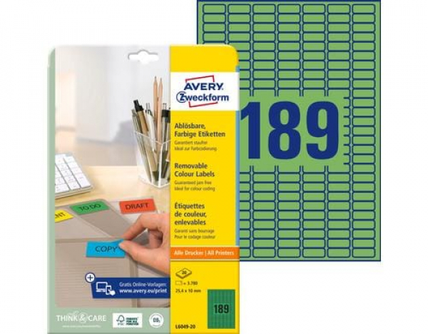 Avery Zweckform - Ordneretiketten 25.4 x 10 mm, 20 Blatt, Grün / Inhalt: 3.780 Etik. / 20 Blatt / Thema: Etiketten