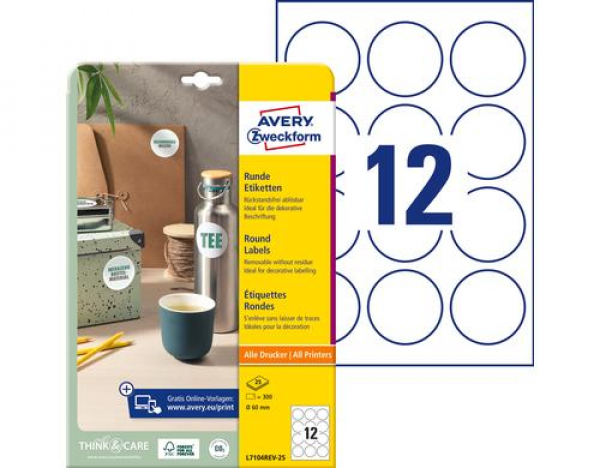 Avery Zweckform - Runde Etiketten 60 mm, 25 Blatt / Inhalt: 300 Etik. / 25 Blatt, 60mm / Thema: Etiketten