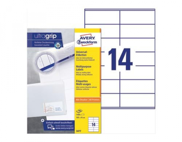 Avery Zweckform - Universal-Etiketten 3477 105 x 41 mm, 100 Blatt / 105,0 x 41,0 mm / Thema: Etiketten