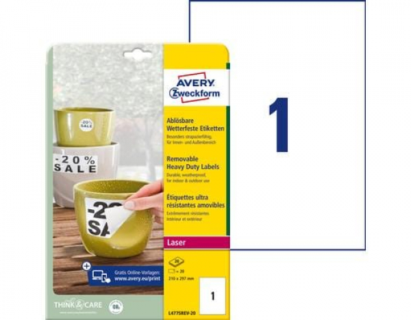 Avery Zweckform - Universal-Etiketten wetterfest 210 x 297 mm / wetterfest, Packung zu 20 Blatt / Thema: Etiketten