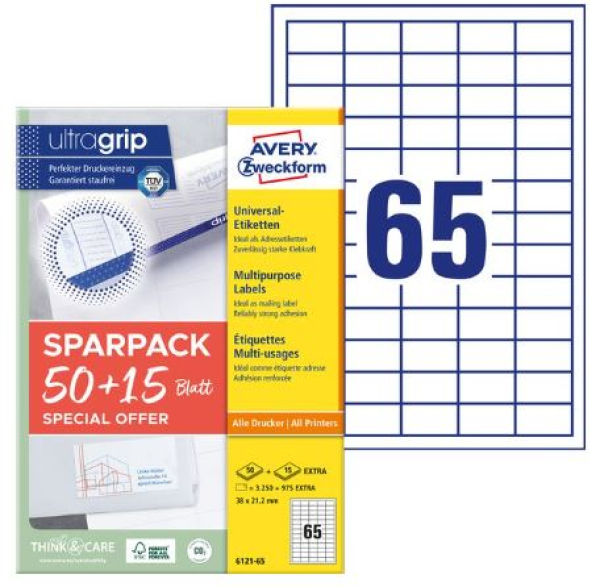 Avery Zweckform Universal-Etiketten, 38 x 21.2 mm, 65 Blatt / 4.225 Etiketten