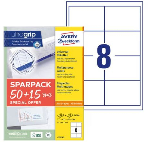 Avery Zweckform Universal-Etiketten 4782-65, 97 x 67.7 mm, 65 Blatt