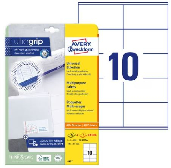 Avery Zweckform Universal-Etiketten 6137, 105 x 57 mm, 30 Blatt