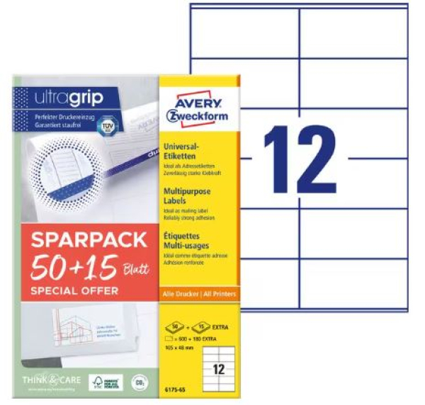 Avery Zweckform Universal-Etiketten 6175-65, 105 x 48 mm, 65 Blatt