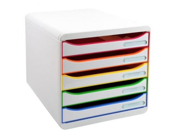 Biella - Schubladenbox BIG-BOX PLUS A4+ Weiss/Mehrfarbig / 5 Schubladen offen, weiss/harlekin / Thema: Schubladenboxen