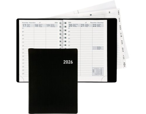 Biella Geschäftsagenda Rex Wire-O Schwarz, 10 x 14 cm / schwarz, 10x 14 cm, 1 Woche auf 2 Seiten / Thema: Agenden