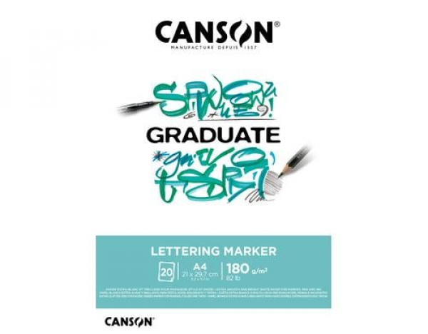 Canson - Zeichenblock Graduate Lettering Marker A4, 20 Blatt / 180g/m2, 20Bl, sehr glatt, FSC / Thema: Malblöcke