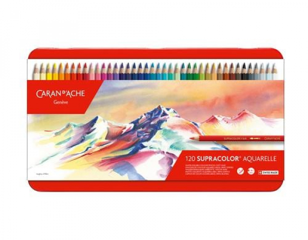 Caran d'Ache - Aquarellfarbstifte Supracolor 120 Stück / Metallschachtel mit 120 Farbstiften / Thema: Malstifte