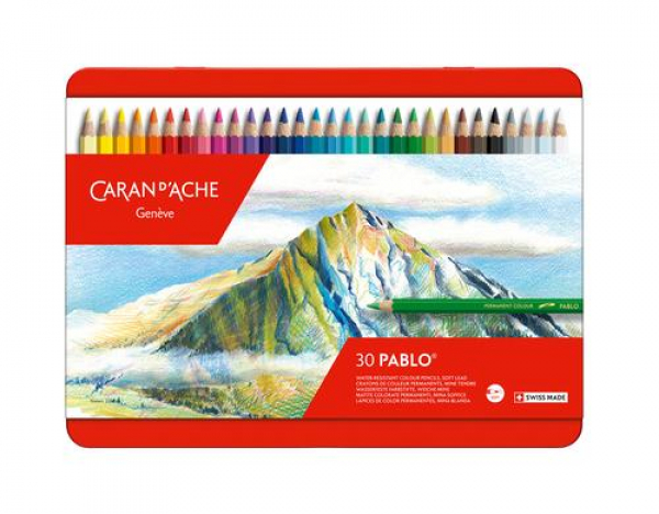 Caran d'Ache - Farbstifte Pablo 30 Stück / Metallschachtel mit 30 Farbstiften / Thema: Malstifte