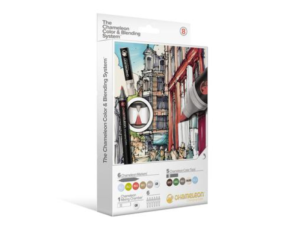 Chameleon Brushpen Color & Blending Set 8 mit 6 Marker / Blau, Olivegrün, Rot, Beige, Grau / Thema: Fasermaler & Fineliner