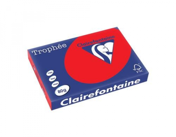 Clairefontaine - Kopierpapier Trophée Colored Copy FSC A3, Rot, 80 g/m2 / 80 gm2, Coral Red, 500 Blatt / Thema: Kopierpapier