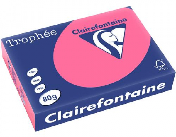 Clairefontaine - Kopierpapier Trophée Colored Copy FSC A4, Pink, 80 g/m2 / 80 gm2, Intensive Pink, 500 Blatt / Thema: Kopierpapier