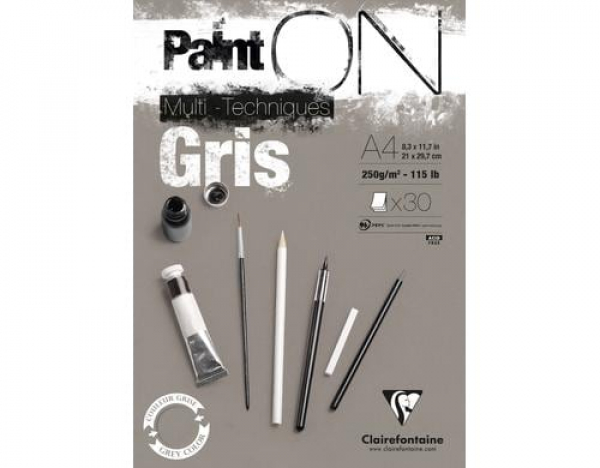Clairefontaine - Malblock PaintON A4, 30 Blatt, Grau / 30 Blatt, A4, 250 g/m2 / Thema: Malblöcke