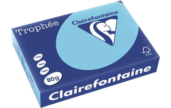 Clairefontaine Kopierpapier Trophee A4, 80 g/m2, Blau, 500 Blatt / blau, 500 Blatt, 80gm2 / Thema: Kopierpapier