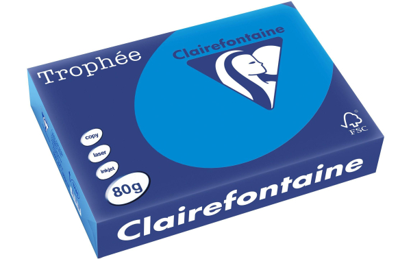 Clairefontaine Kopierpapier Trophee A4, 80 g/m2, Klarblau, 500 Blatt / klarblau, 500 Blatt, 80gm2 / Thema: Kopierpapier