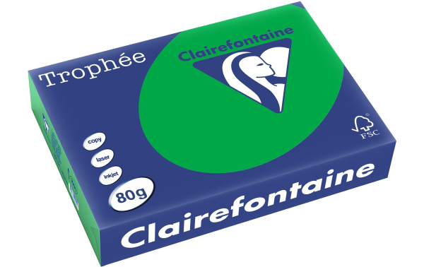 Clairefontaine Kopierpapier Trophee A4, 80 g/m2, Smaragdgrün, 500 Blatt / smaragdgrün, 500 Blatt, 80gm2 / Thema: Kopierpapier