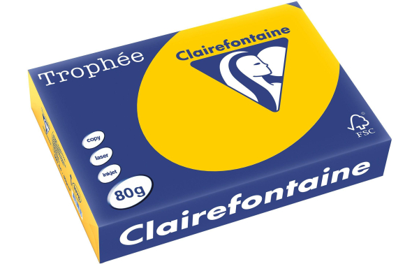 Clairefontaine Kopierpapier Trophee A4, 80 g/m2, Sonnengelb, 500 Blatt / sonnengelb, 500 Blatt, 80gm2 / Thema: Kopierpapier
