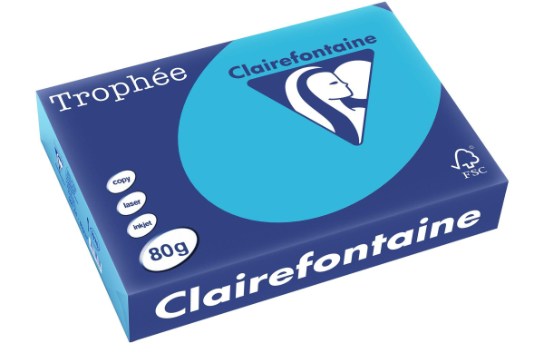 Clairefontaine Kopierpapier Trophee A4, 80 g/m2, Wasserblau, 500 Blatt / wasserblau, 500 Blatt, 80gm2 / Thema: Kopierpapier