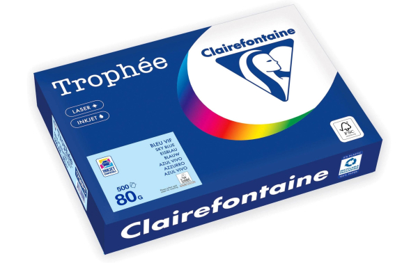 Clairefontaine Kopierpapier Trophee Colored Copy FSC A4, Eisblau, 80 g/m2 / 80 gm2, Sky Blue, 500 Blatt / Thema: Kopierpapier